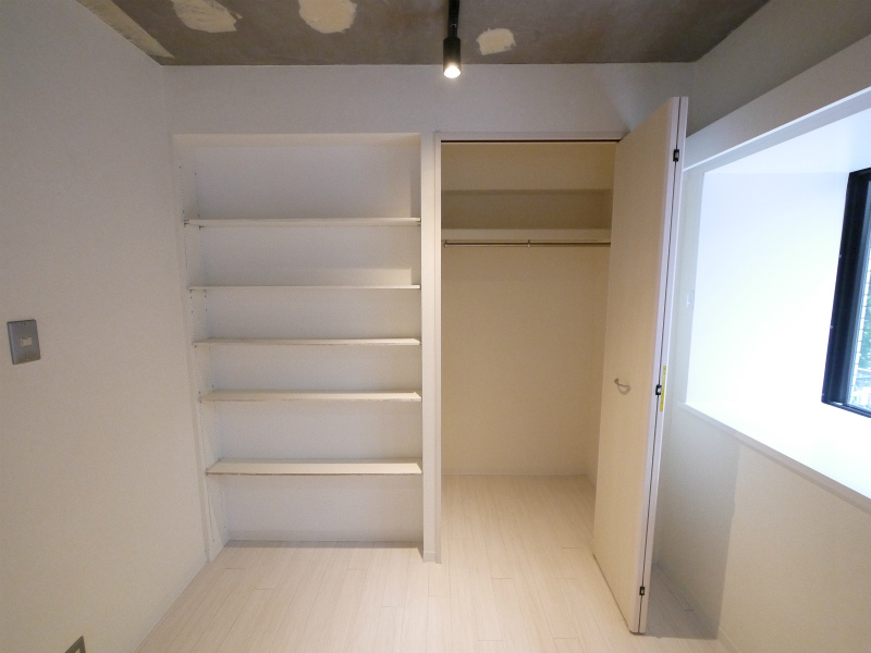 見えている部分だけではなく、そこの左手にも収納があります。ウォークインクローゼット並みの収納力です♪