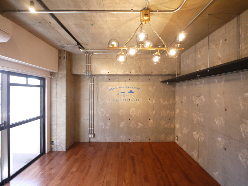 壁と天井はコンクリートの躯体現しでデザイン性を高めています♪