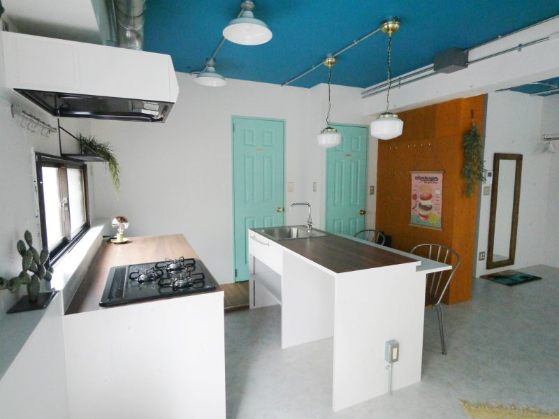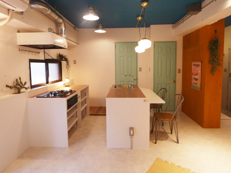 ここまで世界観を作り込んだテイストのお部屋ができるのはリノベならでは☆床材は店舗などでも使われるような土足okな丈夫な素材を選んでいるので、汚れもすぐに落とせます♪