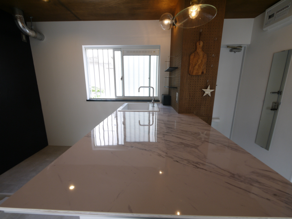大理石デザインのカウンターキッチン