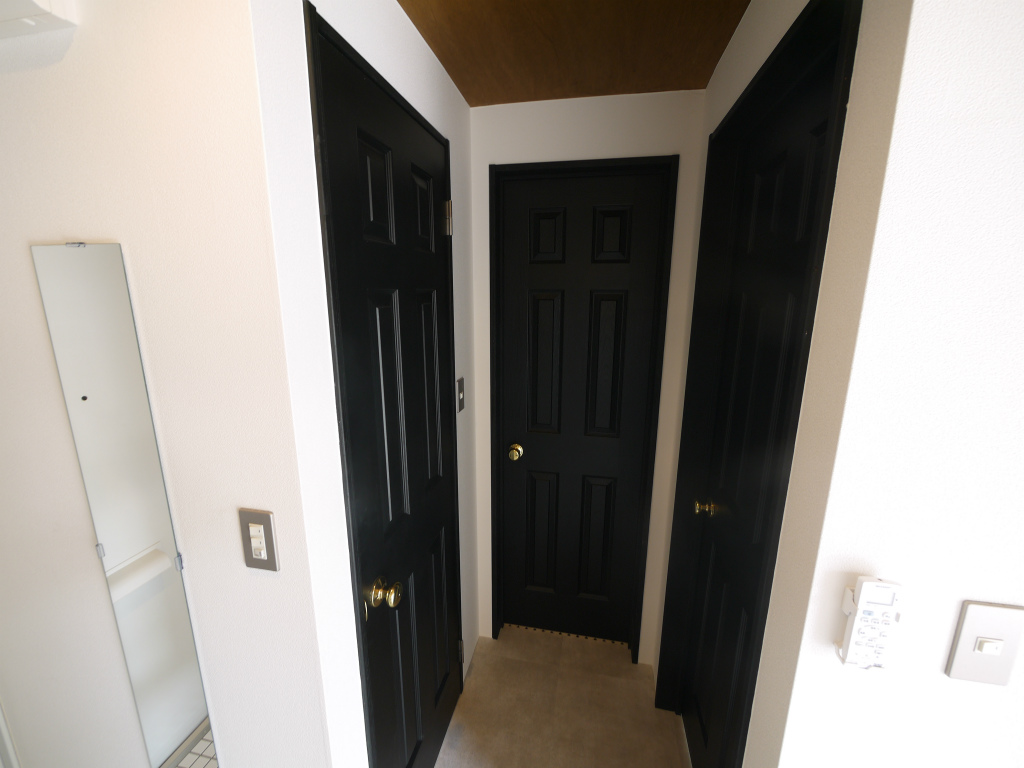 左手はトイレ、正面は洗面とお風呂、右手は寝室。