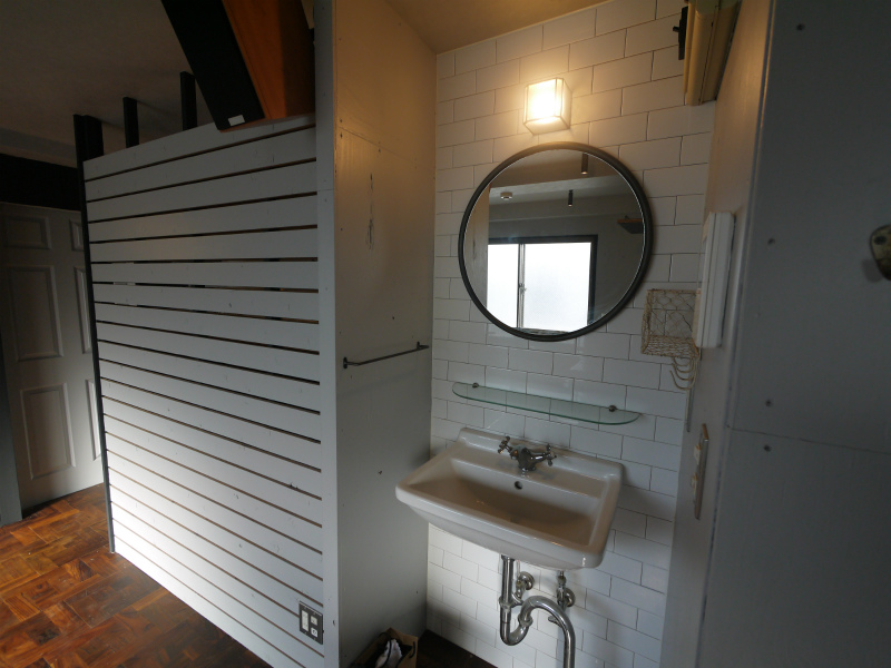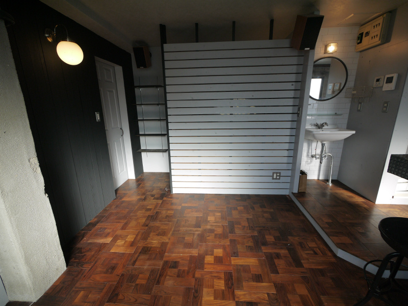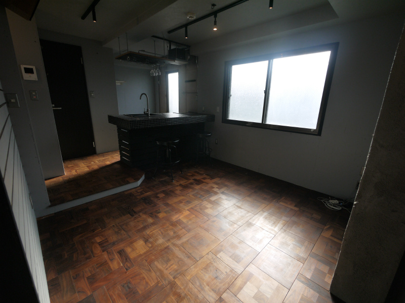 正方形の床材はレトロな雰囲気を演出してくれます。
